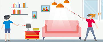 眼控交互、手柄交互、声控交互。交互方式多样化呈现,包含手柄控制(场景漫游)、声音控制(点餐等)、眼睛控制(开关灯、电视等动作)三种交互方式,使用者在虚拟场景中能够如同在现实世界中动作,增强沉浸感。